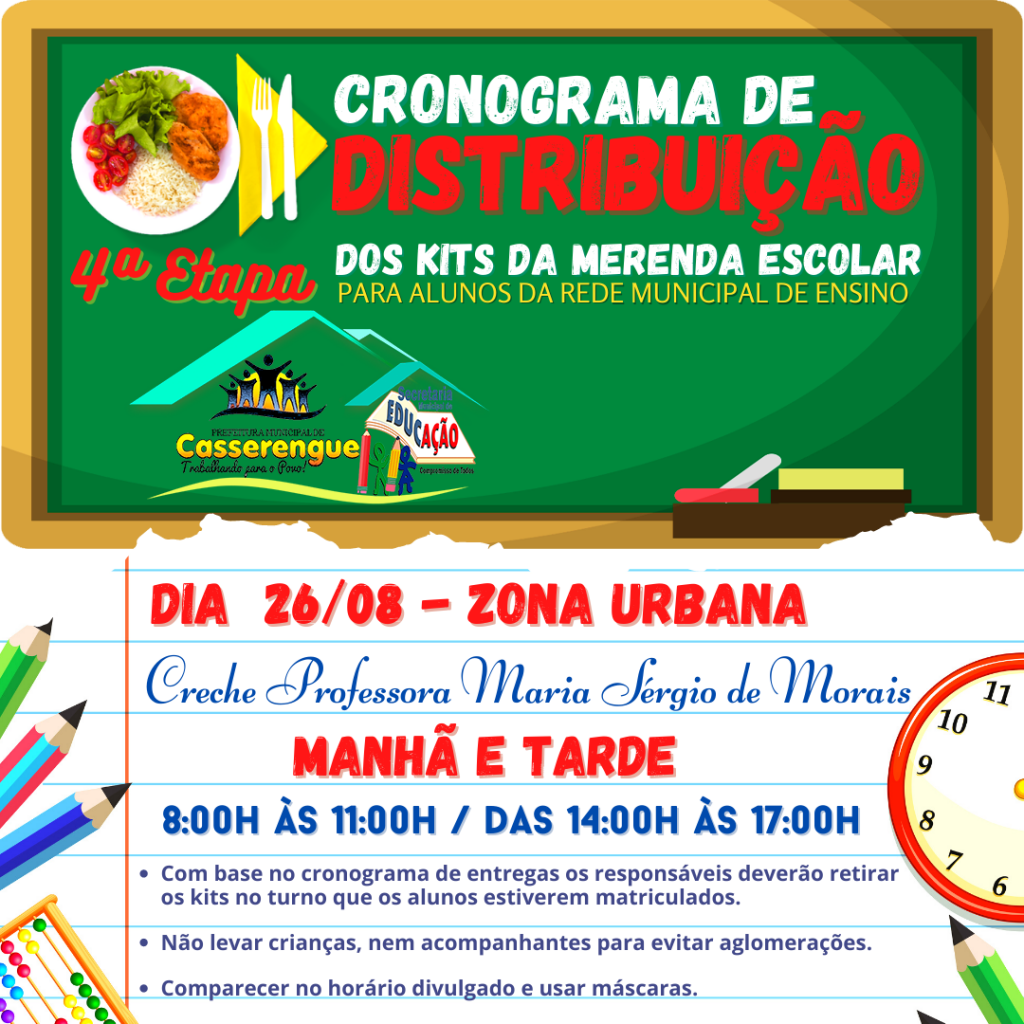 Com base no cronograma de entregas os responsáveis deverão retirar os kits no turno que os alunos estiverem matriculados.