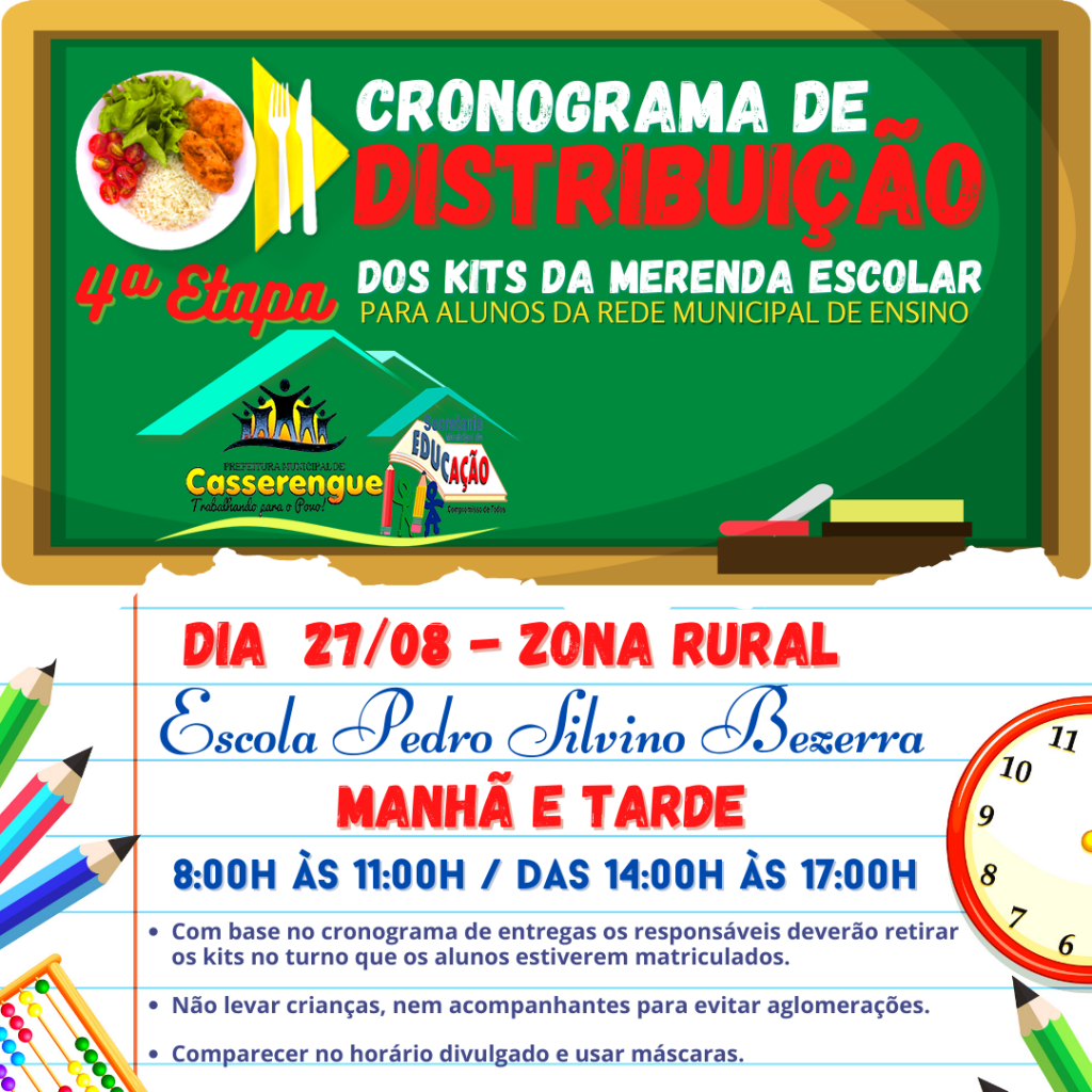 Com base no cronograma de entregas os responsáveis deverão retirar os kits no turno que os alunos estiverem matriculados.
