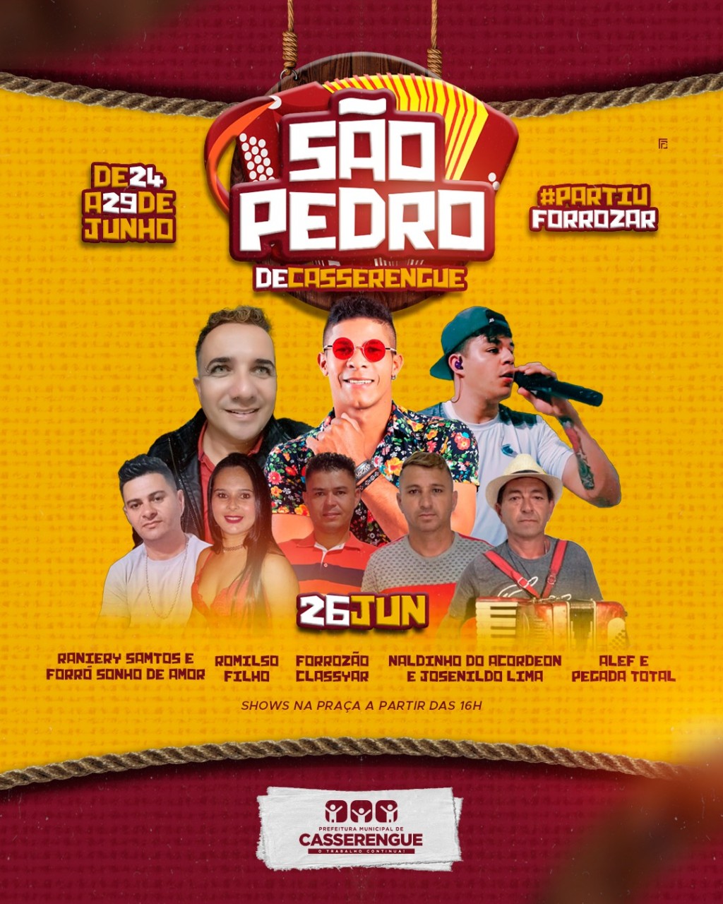 Os Artistas da Nossa Terra vão marcar presença em nosso São Pedro, pra fazer lindos shows e representar os talentos de nossa amada Casserengue.